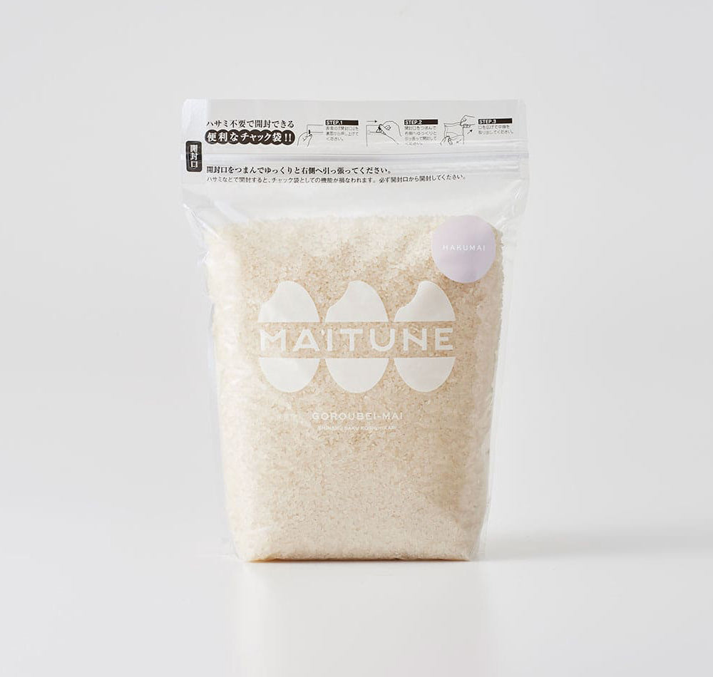 MAITUNE HAKUMAIは、チャック付きの袋でお届けします。